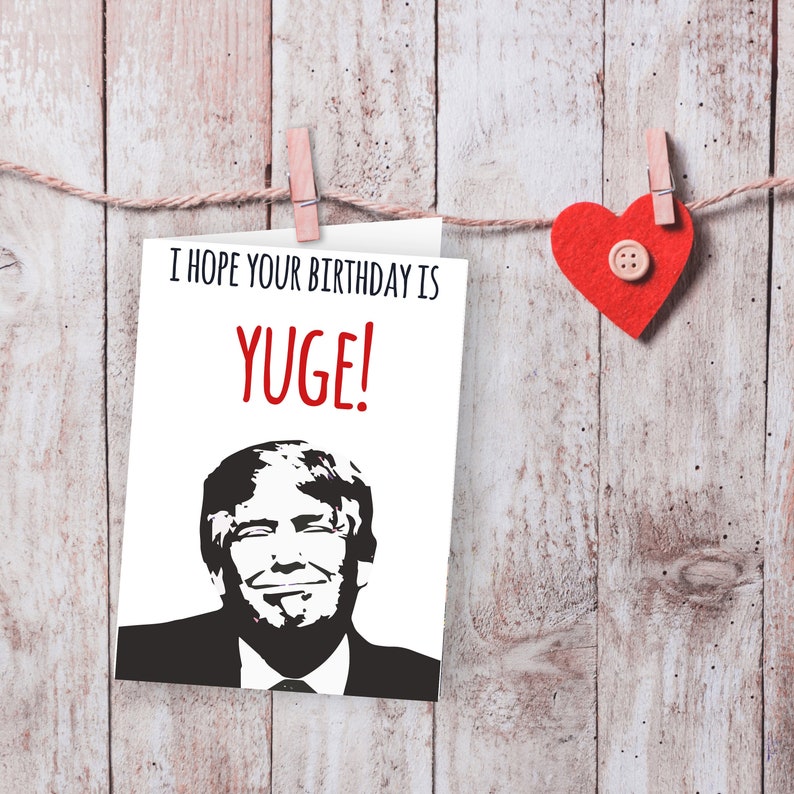 Download Yuge Trump Birthday Card Images. This funny donald trump birthday card is the perfect accessory to give with a bday gift. 5 x 7 (portrait) or 7 x 5.
